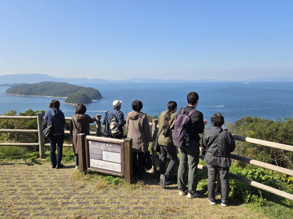 11月8日(土)、8名で加太に行ってきました。休暇村紀州加太の日帰り駐車場からまずは砲台跡へ。そのあと向かった展望台からは、天候にも恵まれ紀淡海峡の絶景を望むことができました。